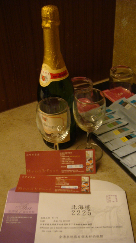 在Y 拍標得此張住宿券,得標金額當然低於旅展價數百元,又假日不加價,很值得。北海樓是房內沒溫泉,但卻送大眾池泡湯無限次,且下午即可進房,提早到,還可以先享用戶外設施;而東海樓是房內泡湯,沒送大眾池泡湯,且要晚上7點才能進房。 下午4點來辦理Check in手續,R.2225。