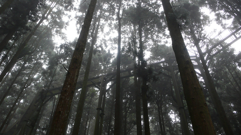 來到神木步道,大片的柳杉純林,迷霧中別有一番風味。