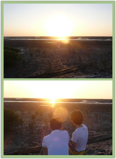 走下海堤,周邊正種植、復育紅樹林,所以不要去破壞了復育地,遠遠欣賞美景就好。