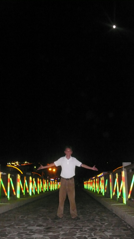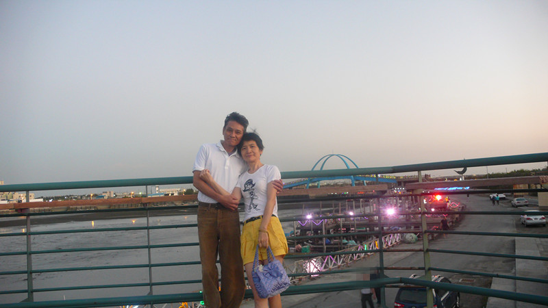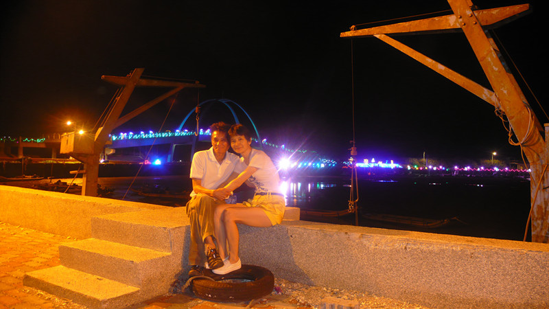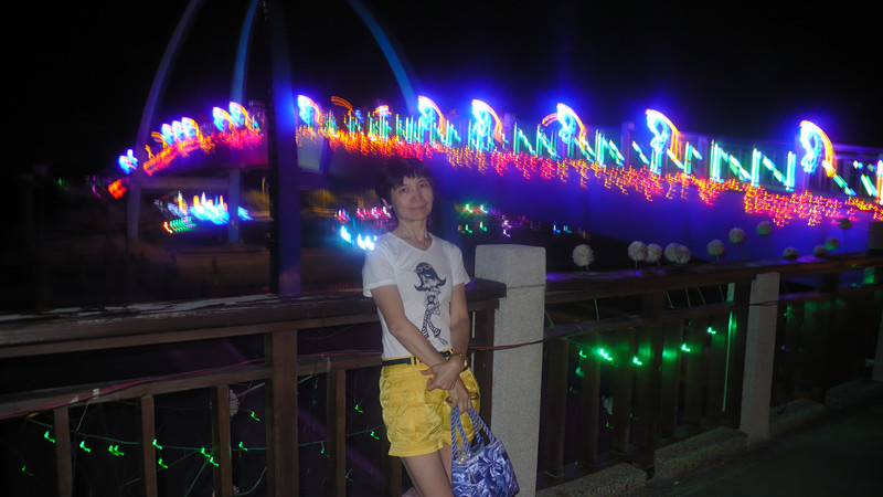 拱橋前方一排小風車就是前陣子很夯的王功新景點。不過我們沒有去拍拍,因為沒發現在那兒,以為在紅樹林步道那邊的,是回來整理相片才發現,原來就近在眼前而錯過了。