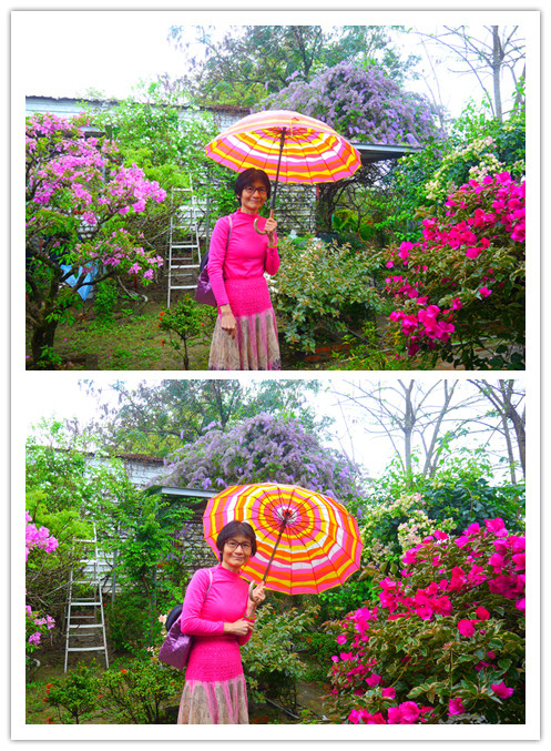 後方那棵是火把般的塔寶巾(九重葛的一種)。