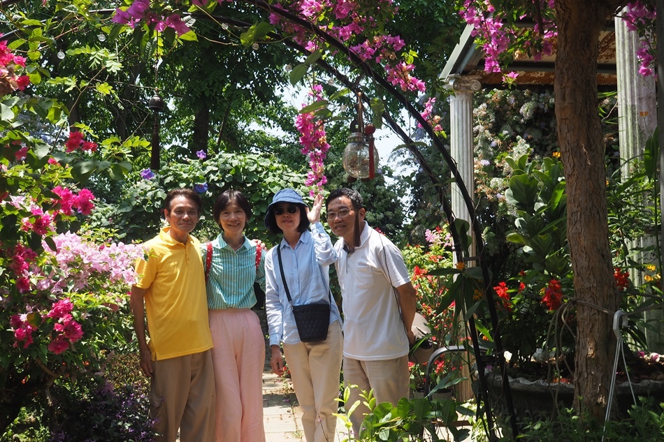 再往園區內走一些,還能看見最近也開花的九重葛花瀑喔!