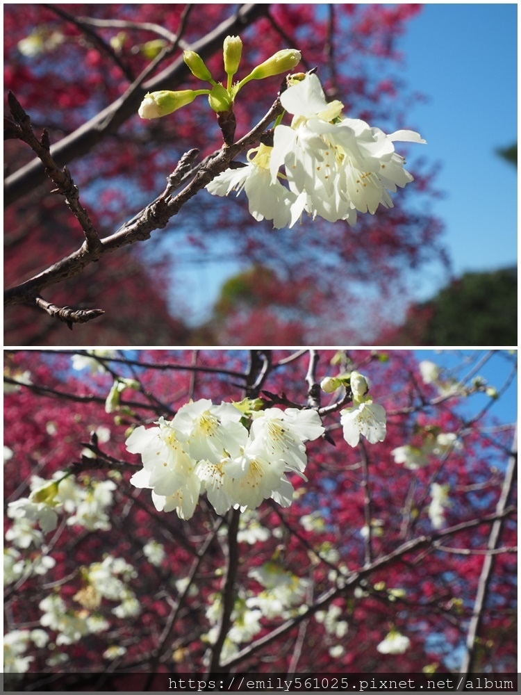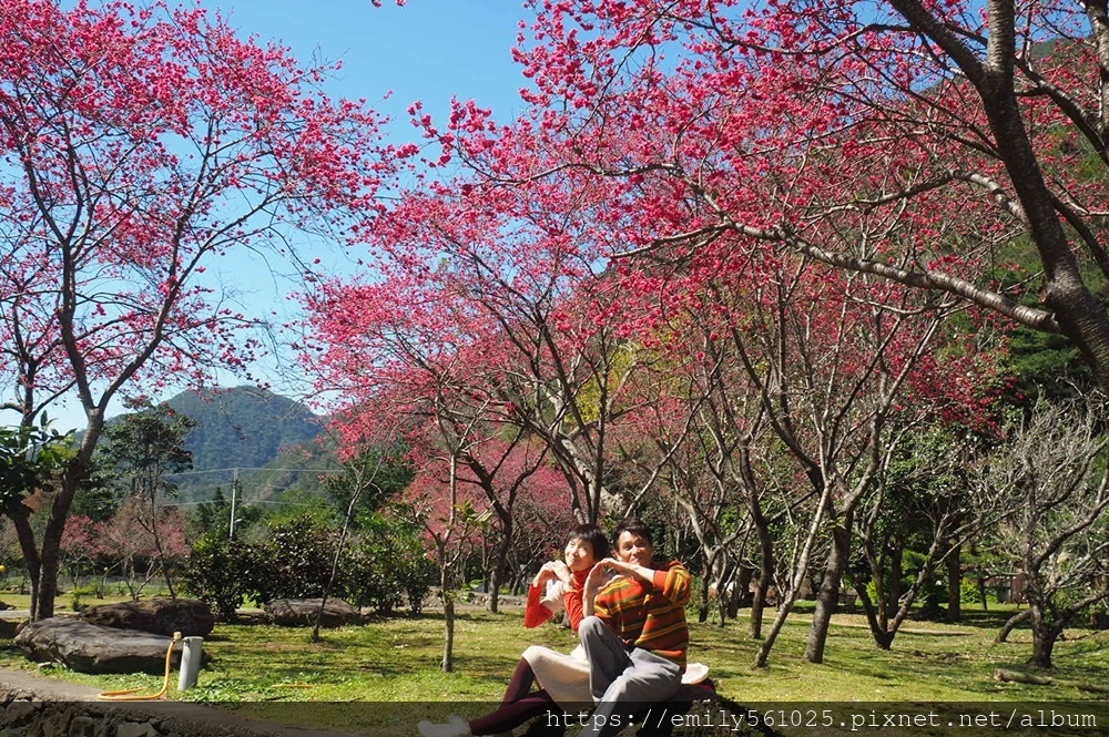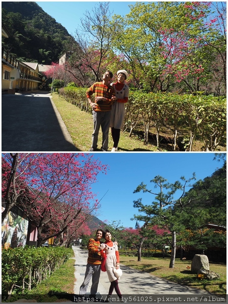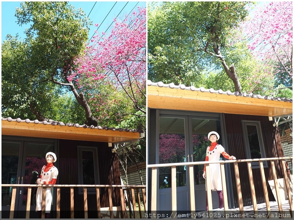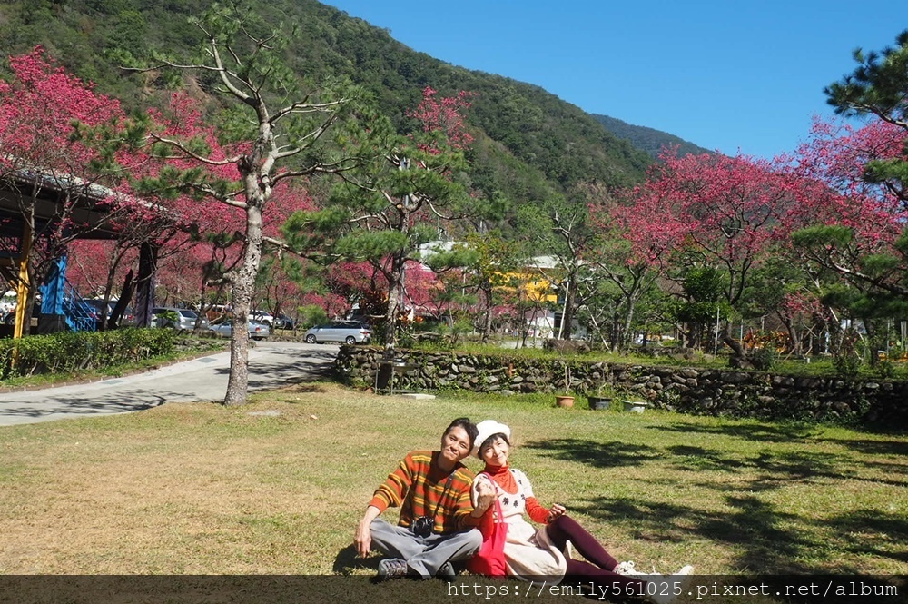 南投埔里箱根溫泉生活館,種植了許多八重櫻,園內還有碧桃花、粉色富士櫻、白色福爾摩莎櫻。