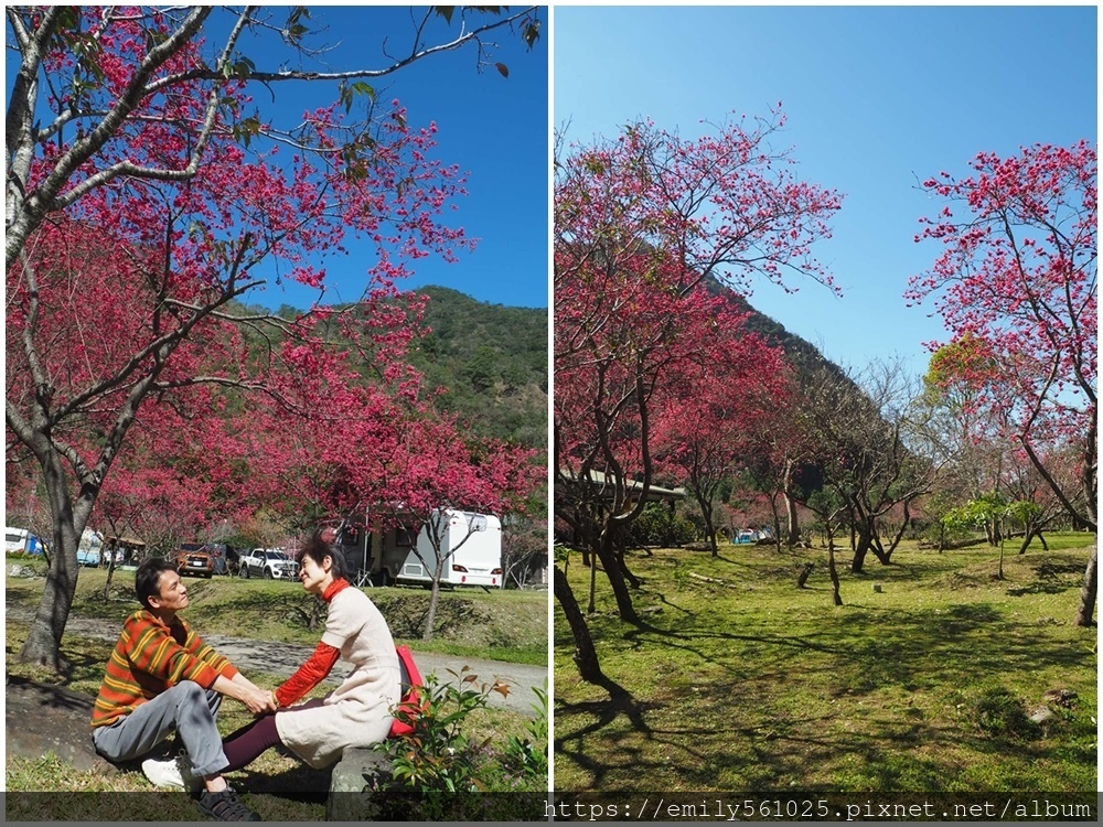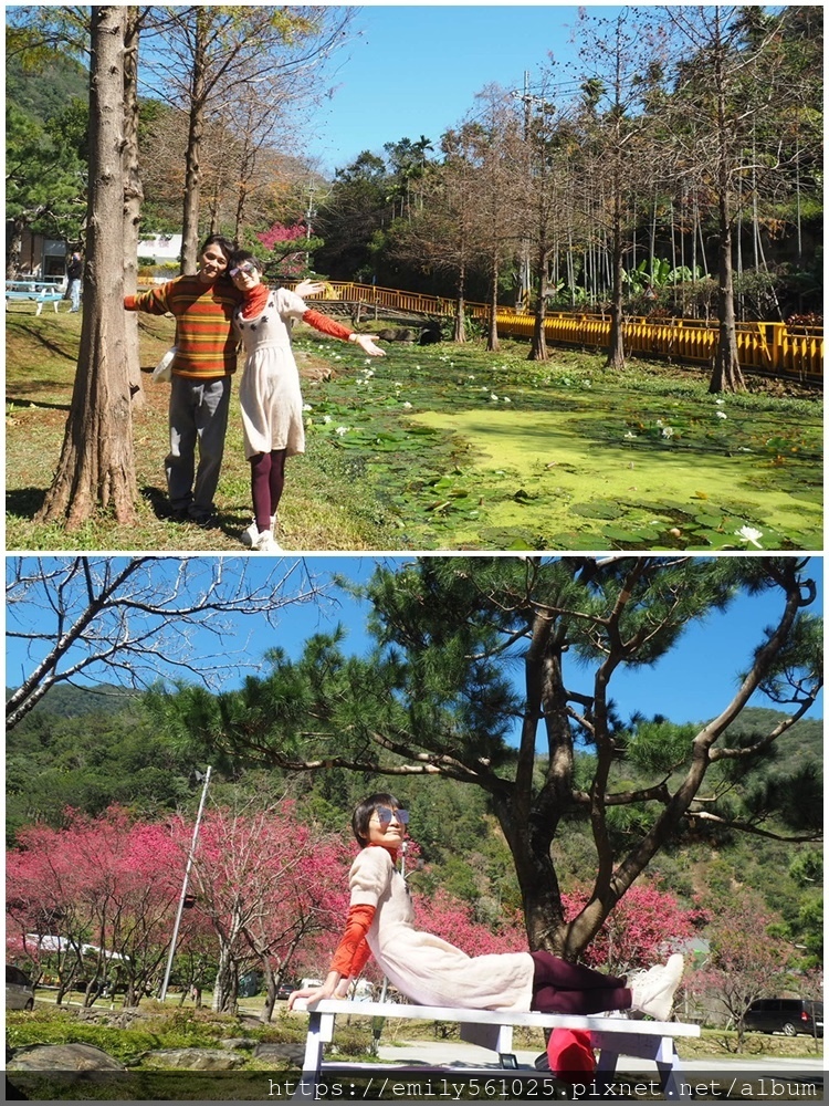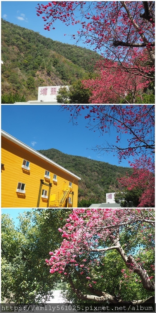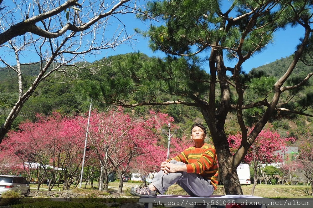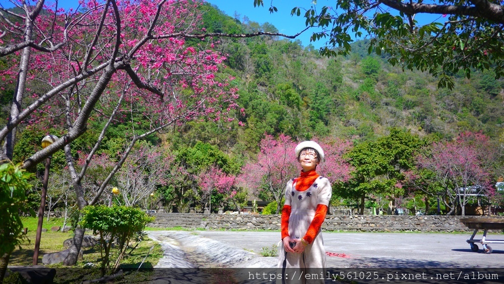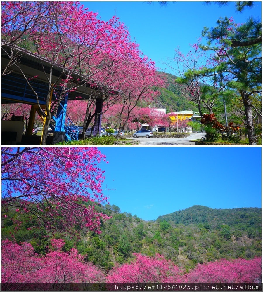 南投埔里箱根溫泉生活館,種植了許多八重櫻,園內還有碧桃花、粉色富士櫻、白色福爾摩莎櫻。