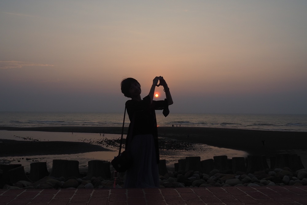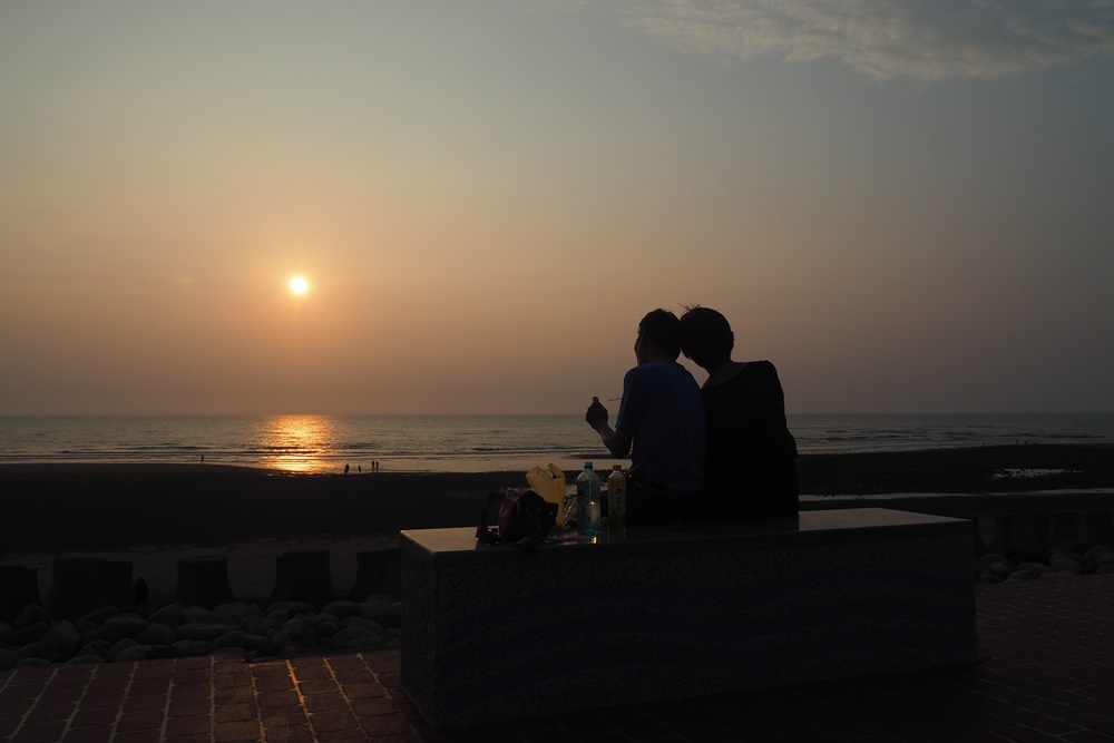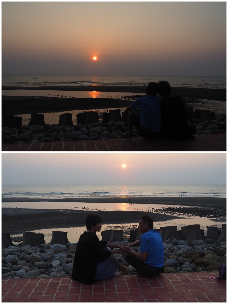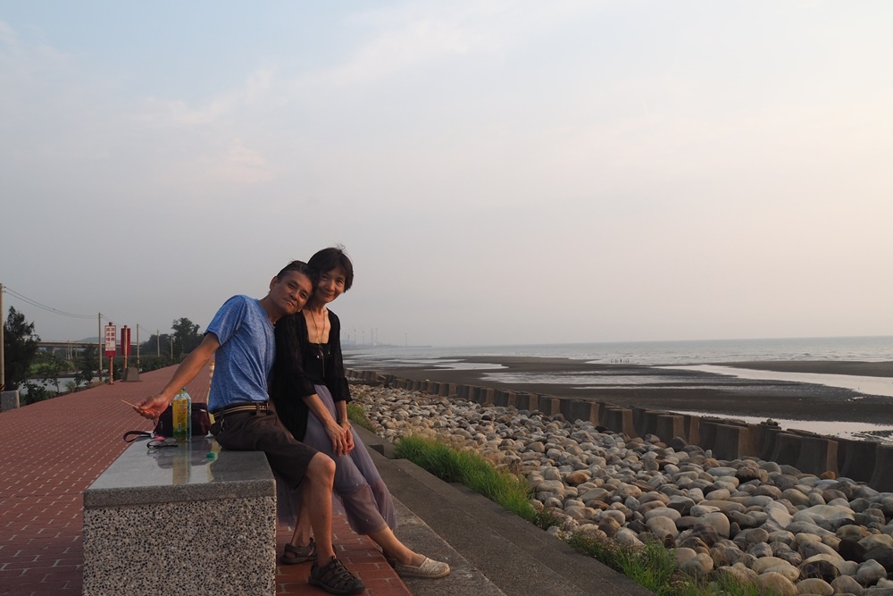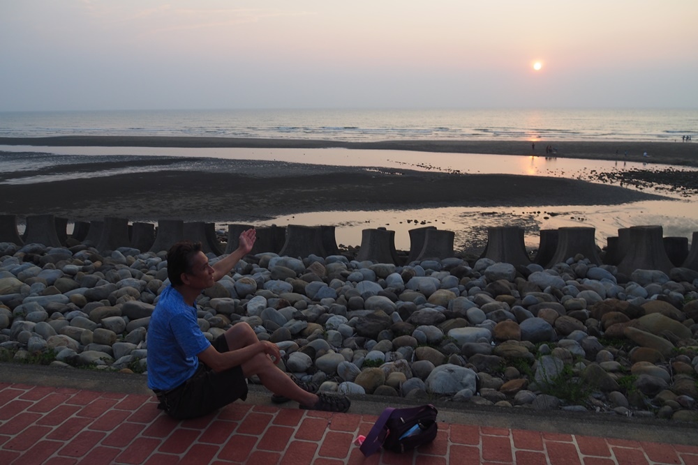 坐在海堤上,靜靜欣賞美景。
